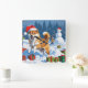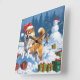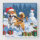 Shiba Inu Running in Snow with Christmas Hat Square Wall Clock