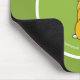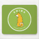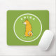 Mousepad with an illustration of a Shiba, sitting upon a yellowish green background.