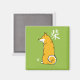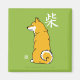 Square magnet with an illustration of a Shiba, sitting upon a yellowish green background.