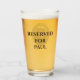 Custom "Reserved for ..." personalised pint glass featuring gold and silver mediaeval shield on the front! Simply add a name for each glass. Great for places with regular customers: bar, pub, game room, restaurant, personalised glasses at home, or any place. Click "Personalise" to test it out and see how it looks on this page! Made with top quality Libbey barware, and holds standard 16 ounces.