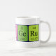 Shigeru spelled out as S H I Ge Ru (Sulfur Hydrogen Iodine Germanium Ruthenium) on a mug for the scientist in you.