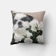 Black and white Shih Tzu face looking cute as can be in with white roses dog lovers throw pillow