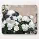 Black and white Shih Tzu looks cute as can be in with the white roses dog lovers mouse pad
