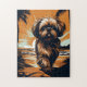 Colourful graphic art design of a shih-tzu at a tropical beach with palms. Awesome gift for Shih-tzu owner and Shih-tzu lover.