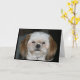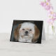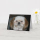 An extreme closeup photograph of a cute white Shih Tzu Dog with an intense gaze is the subject of my "Shih Tzu Better Get Well Soon!" get well card.
