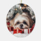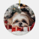 This adorable Christmas ornament, featuring a Shih Tzu puppy lying under a Christmas tree, is a wonderful gift for any Shih Tzu lover.