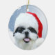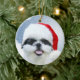 Black and white Shih Tzu in a Santa hat and a winter background dog lovers ceramic Christmas ornament