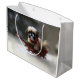 These two personalised and stylish glossy gift bags were simply ideal to carry wedding gifts wrapped in the matching gift wrapping paper. The customised text printed on the gift bags was precisely as ordered and while the photo does not quite do the gift bags justice, rest assured they look fabulous. The gift bags were securely packaged for safe transit arriving undamaged and it was a speedy turnaround from ordering to delivery. Thank you Zazzle for another 5-star transaction in every way!