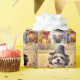 A watercolor-style painting of a cheerful dog sitting amidst a pile of vibrant fall leaves, surrounded by tiny pumpkins and scattered acorns. The dog wears a little pilgrim hat and beams with joy, capturing the spirit of Thanksgiving. In the background, soft harvest fields and golden-hued trees create a peaceful countryside ambiance. Gentle textures and warm, muted autumn tones give the scene a cosy, nostalgic feel perfect for celebrating the beauty of the season.