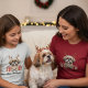 "This irresistibly cute illustration features a portrait of an adorable Shih Tzu dog with its characteristic long, fluffy fur and expressive eyes. The dog is wearing festive reindeer antlers adorned with small holiday ornaments. Two beautifully wrapped Christmas presents with bold red ribbons sit on either side. This high-quality graphic is ideal for personalized gifts for Shih Tzu owners, holiday apparel, Christmas cards, ornaments, or any product celebrating this popular toy breed."