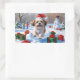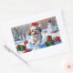 Shih Tzu Running in Snow with Christmas Hat Rectangular Sticker