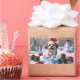 A playful Shih Tzu runs happily through the snowy winter scene, wearing a festive red Christmas hat. This charming design highlights the breed’s flowing coat, sweet expression, and affectionate nature while capturing the warmth and joy of the holiday season. A delightful winter moment full of festive cheer.