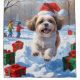 A playful Shih Tzu runs happily through the snowy winter scene, wearing a festive red Christmas hat. This charming design highlights the breed’s flowing coat, sweet expression, and affectionate nature while capturing the warmth and joy of the holiday season. A delightful winter moment full of festive cheer.