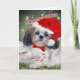 Shih Tzu "Santa Paws" a one of a kind Christmas Card is a Friskybizpet Design featuring an adorable toy dog wearing Santa Hat, Christmas bow tie while holding red and white candy cane.