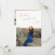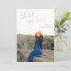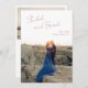 Modern wedding save the date card featuring a simple design with your names in an elegant script at the top left and your date, city and state below to the right, over your favourite vertical photo. The template includes a sheer overlay along the top to help the text stand out against your photo and may be removed in the design editing tool. The back has a second horizontal picture along with additional details in desert rose (muted pink). This minimal, monochromatic design works well for a variety of wedding styles and themes. If you prefer, you may change the colours in the design editing tool.