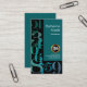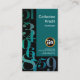 A simple black cover with stylish shimmering silver cyan numbers surrounding the borders of the card. At the top lies a cyan coloured rectangle that has your prestigious name and job title. Near the base of this rectangle are your faux gold logo of a calculator which you can use. Underneath this is the contact details.