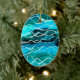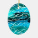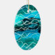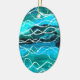 An oval ornament with an abstract watercolour design suggesting waves by Judy Adamson.