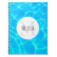 A spiral notebook with a photograph of clear blue pool water, with shimmering reflections.