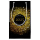 This New Year's Eve gift bag features a circular pattern of shimmering gold-tone lights against rich black, creating a circular frame for the year indication. The image repeats on both sides of the bag so you can change the message on either side independent of the other one. It is versatile enough as a favour or gift bag for an office holiday party, birthday party, New Year's Eve wedding, or holiday cocktail party. Available with matching products.