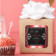 Matching a luminous shimmery ruby red coloured frame and cute hearts graphic on a black background.