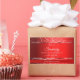 Make a lasting impression with this elegant product label design featuring shimmery soft glitter stars graphics and shining silver lines on a red shimmer effect background.