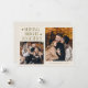 Minimal and modern holiday photo template card featuring 2 photos with a text that says "shining bright together" with stars. You can also add another picture and message on the back. The background is cream.