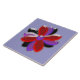 This awesome tile features a digital image of a daisy flower with purple, red and black coloured petals with a purple centre. The petals look like they are made of shining plastic that has caught the light and caused an iridescent effect. The background is a calming blue colour.