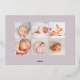 Modern elegant birth announcements feature your favourite horizontal or landscape orientated newborn photo with "introducing" across the top in rose gold foil calligraphy script lettering. Baby's name and birth stats appear beneath. Add six additional photos to the back in a collage layout, or delete to leave blank.