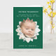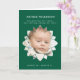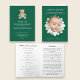 Celebrate the life of your precious child with this "Shining Star" Funeral Order of Service card. The deep emerald green cover displays a radiant flower-like frame, perfect for showcasing a beloved photograph of your little one. Below the photo, a tender quote, "Too precious for earth, now shining among the stars," offers solace and remembrance. Inside, the order of service is thoughtfully laid out to include all the essential elements of a memorial, such as hymns, readings, eulogy, and prayers. This card serves as a beautiful and functional memento, ensuring that the light of your child's memory continues to shine brightly. Honor their brief, beautiful life with this elegant and comforting design.
