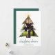 Send joyous holiday greetings with these beautiful holiday photo cards featuring a vertical or portrait orientated image inside a modern Christmas tree cutout illustration topped with a faux gold foil star. "Christmas Cheer" appears beneath in festive spruce green lettering, with your family name and the year beneath. Add an additional photo and a personal message to the back.