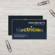 A dark blue cover is accentuated by a simple yellow electrician's signage. The dot in the letter-i is a lamp that shines down on the word "electrician", casting a lighter shadow downwards.