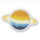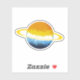 Digital art of a shiny planet in the colours of the aromantic asexual flag surrounded by rings like Saturn in outer space.