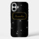 A luxury and elegant phone case with name in classic art deco gold frame. The design is a all black sequins pattern with some highlight sparkles. (product has no real sparkle or glitter). Add your name and create a personal elegant case.
