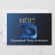 A modernistic, metallic, blue Chanukkah menorah, featuring a lion in silhouette, against a dark, night-like background. All nine of the candles are lit.