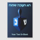 A modernistic, metallic, blue dreidel against a dark, night-like background.  Two of the Hebrew letters found on a dreidel, nun and shin, glow brightly.  Hebrew text reading "Chag Chanukkah Sameach" (Happy Hanukkah) also appears in glowing blue and white. Add your own additional text.