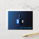 A modernistic, metallic blue dreidel against a dark, night-like background.  Two of the Hebrew letters found on a dreidel, nun and shin, glow brightly.  Add your own text.