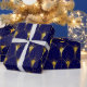 Shiny Gold Art Deco Pattern On Dark Blue Wrapping Paper