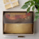 Shiny gold Christmas tree with lanterns, gold dust and bows. Customisable tissue paper template