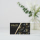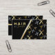 Stylish personalised business cards for hairstylists with faux gold and silver scissors on a black background. The text is fully customisable.