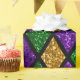 Shiny green, purple and golden glittering paillett wrapping paper