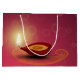 Shiny and bright Happy Diwali illustration: red diya (a cup-shaped indian oil lamp) with an indian ornamental mandala and a paisley on a beautiful bokeh background.