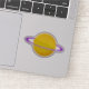 Digital art of a shiny planet in the colours of the intersex flag surrounded by rings like Saturn in outer space.