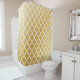 Chic, stylish modern Quatrefoil or Moroccan, trellis or lattice pattern in a trendy faux shiny Gold look colour on a white background for home shower curtains. This simple and elegant design will enhance any bathroom, beach house, holiday house, or home decor. Great gift for wedding, engagement, christmas or birthday or someone you love.
