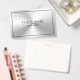 Shiny metallic silver, stainless steel texture print with customisable black typography and simple frame.