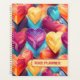 The hearts on this planner cover (front and back) are in a rainbow of colours and have a design that gives a shiny 3D effect (no shiny paint is used). They resemble hearts you may see in a video game. You can edit the date to reflect the current year.