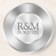 Shiny Silver Grey Stainless Steel Look Monogram Coaster