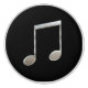A digital design of a chrome looking silver coloured beamed double whole note with a shine of light across it and an embossed appearance on a black background. Digital design by Designsauce.