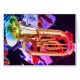 This colourful shiny tuba is part of a Portugeuse brass band from Montreal, Canada, who are visiting the local Portuguese community in Hull (Gatineau) Quebec. This image is great to send to friends and family, music lovers, music teacher or student, tuba players, anyone who enjoys marching bands, brass bands, brass instruments and tubas in particular. The metal brass is a combination of copper and zinc. It has a lovely golden glow and is often polished to a warm patina. You can see reflections of people, trees and houses in the flared bell of the tuba. A bit of Tuba Trivia for Tubaholics - invented in the early nineteenth century, the tuba is the largest and lowest-pitched musical instrument in the brass family. It's also classified as a wind instrument or aerophone. A person who plays a tuba is known as a tubaist or tubist in America; in the UK, one who plays tuba in an orchestra is a tuba player; in a brass band, a bass player. The bass tuba was invented by a pair of Prussians (northern Germany) in 1835; the tenor tuba by the son of one of the original inventors, in 1838.