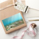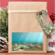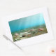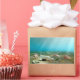 A ship in a bottle sunk in the shallows of the ocean, surrounded by seashells and lit by rays of sunlight.