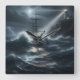 Ship in a storm guided by lighthouse - square wall clock